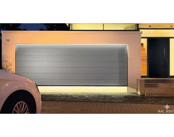 Porte de garage sectionnelle motorisé Renomatic H.2000 x l.3000mm Coloris Aluminium Gris 9007 Woodgrain