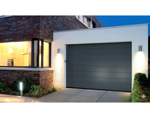 Porte de garage sectionnelle RenoMatic HORMANN à rainures M, avec motorisation ProMatic 4 et 2 émetteurs inclus.