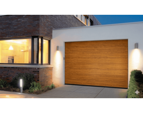 Porte de garage sectionnelle motorisé Renomatic H.2125 x l.2500mm DecoColor Golden Oak