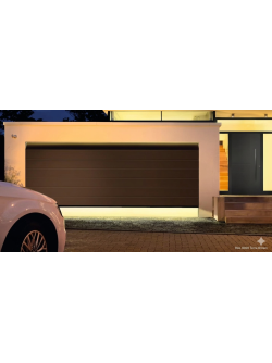 Porte de garage sectionnelle motorisé Renomatic H.2125 x l.3000mm Coloris Brun 8028 Woodgrain