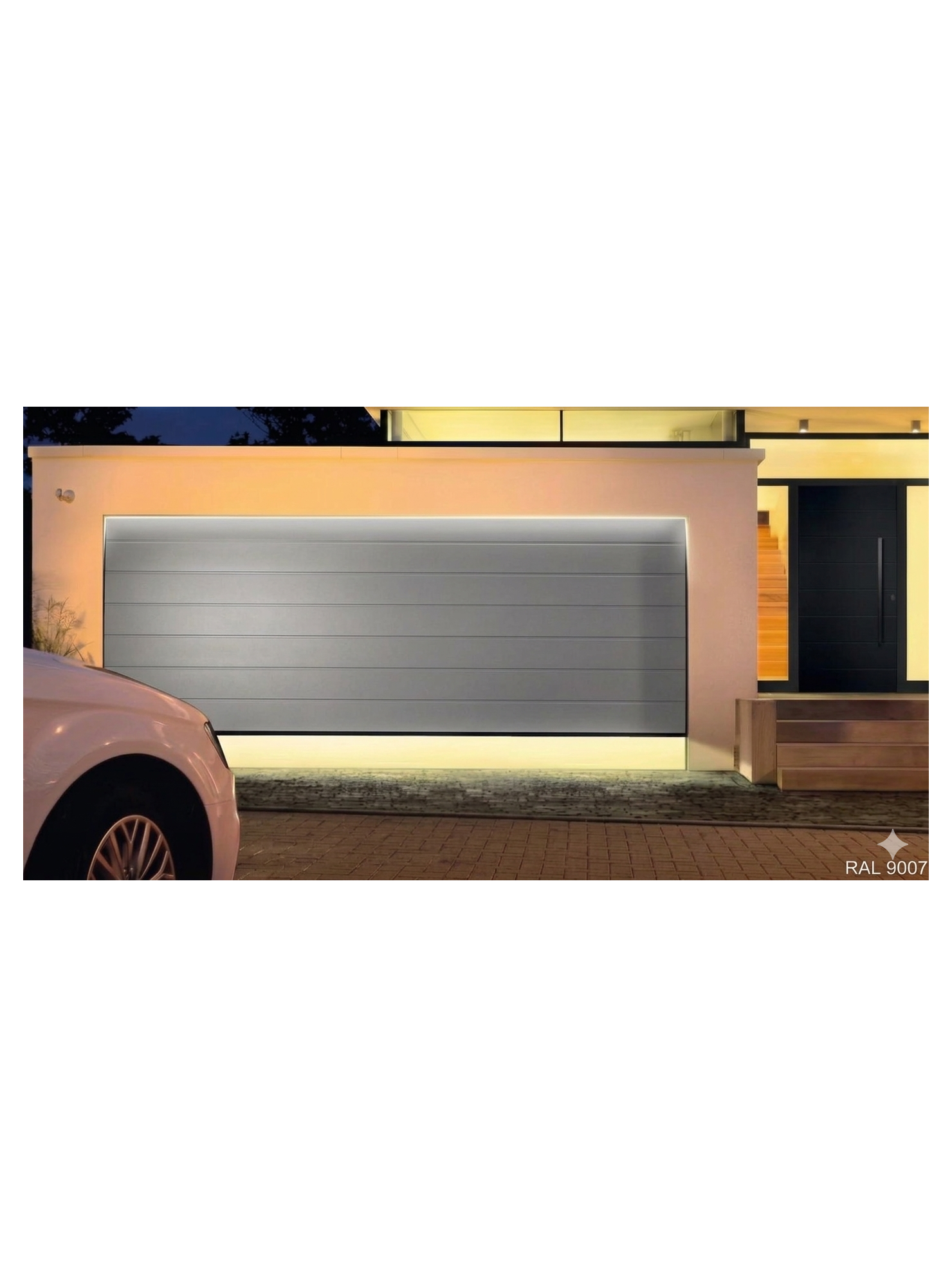 Porte de garage sectionnelle motorisé Renomatic H.2125 x l.3000mm Coloris Aluminium Gris 9007 Woodgrain