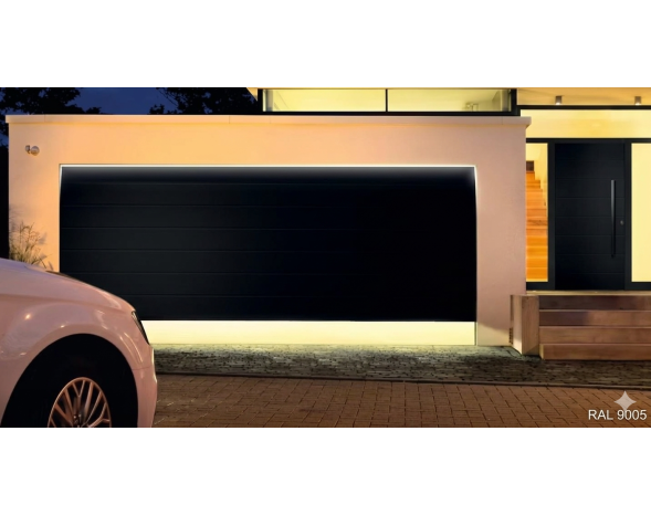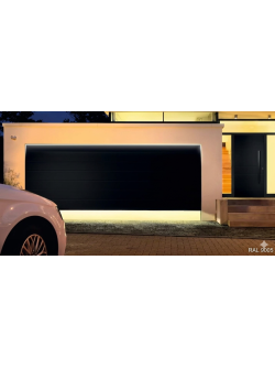 Porte de garage sectionnelle motorisé Renomatic H.2250 x l.3000mm Coloris Noir 9005 Woodgrain