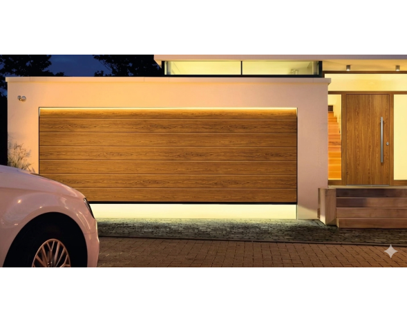 Porte de garage sectionnelle motorisé Renomatic H.2250 x l.3000mm DecoColor Golden Oak