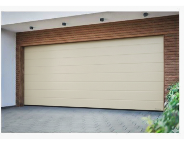 Porte de garage sectionnelle motorisé Renomatic H.2000 x l.2375mm Coloris Ivoire 1015 Woodgrain