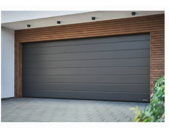 Porte de garage sectionnelle RenoMatic HORMANN à rainures M, avec motorisation ProMatic 4 et 2 émetteurs inclus.