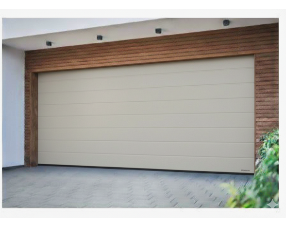 Porte de garage sectionnelle motorisé Renomatic H.2000 x l.2375mm Coloris Gris Lumière 7035 Woodgrain
