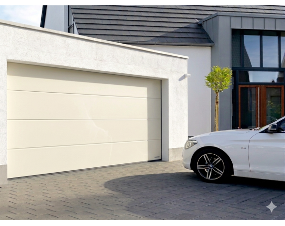 Porte de garage sectionnelle motorisé Renomatic H.2000 x l.2500mm Coloris Ivoire 1015 Woodgrain