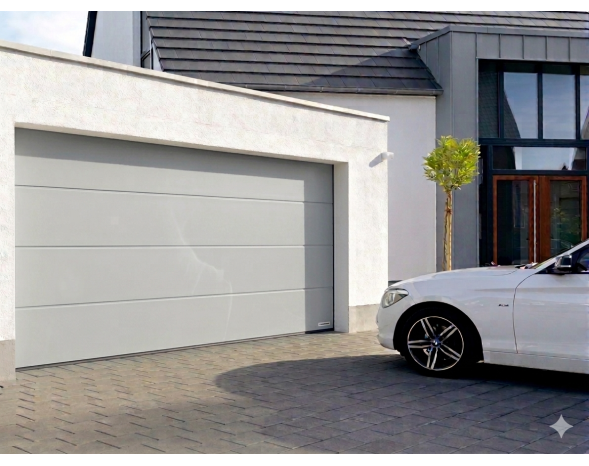 Porte de garage sectionnelle RenoMatic HORMANN à rainures M, avec motorisation ProMatic 4 et 2 émetteurs inclus.