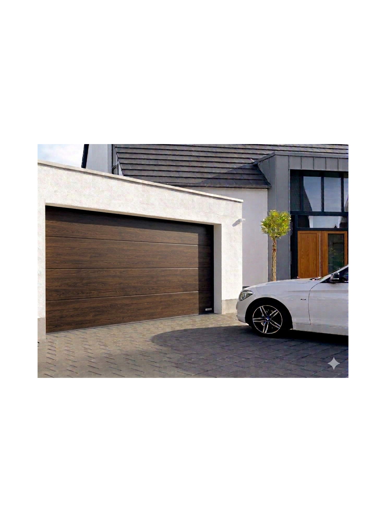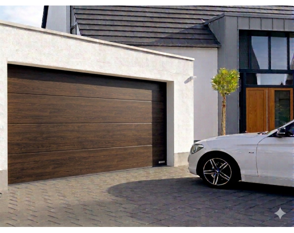 Porte de garage sectionnelle motorisé Renomatic H.2000 x l.2500mm DecoColor Dark Oak