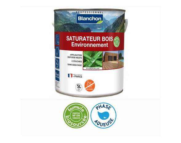 Depuis 2005, la Ligue Qualité Environnement Blanchon conjugue performance technique et réduction de l'impact environnemental. Le Saturateur Bois Environnement contient 87% d'ingrédients naturels, biosourcés et minéraux (non issus de l'agriculture biologique) dont 20% de carbone biosourcée mesuré selon la norme NF EN 16640.