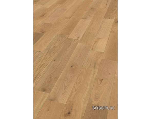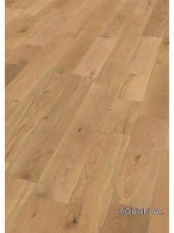Ce parquet contrecollé est constitué de lames de longueurs multiples et courtes tendances. Il donne un aspect traditionnel et naturel. Il est très facile d'entretien grâce à son verni naturel.