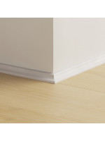Moulure à peindre, qui peut également rester en blanc. Facile à poser avec la colle One4All. Ne convient pas aux pièces humides ; consultez notre gamme de plinthes résistantes à l’eau.